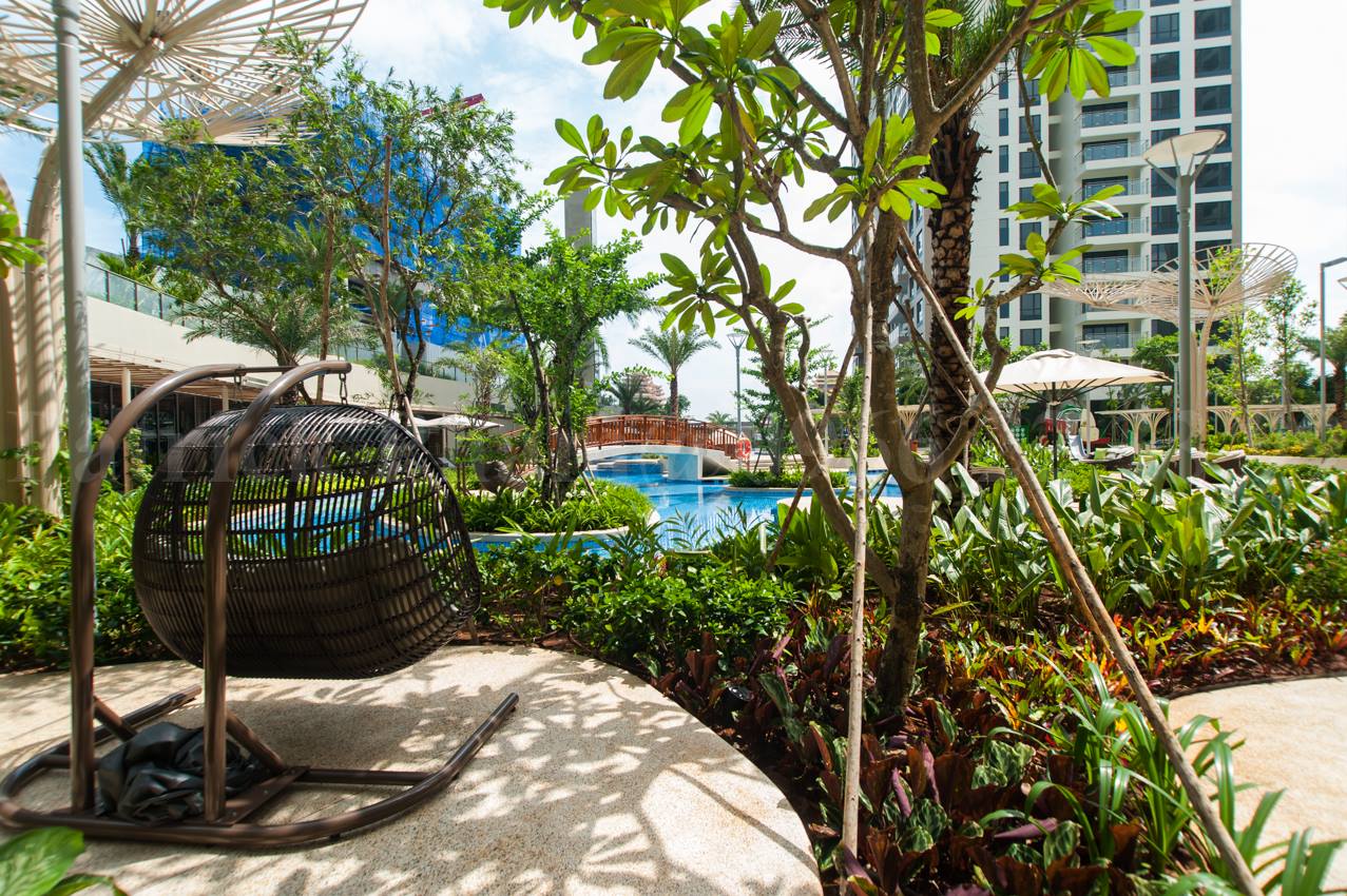 - Tòa bộ khuôn viên được thiết kế theo tiêu chuẩn resort. Tiểu cảnh sân vườn xuyên suốt dự án.